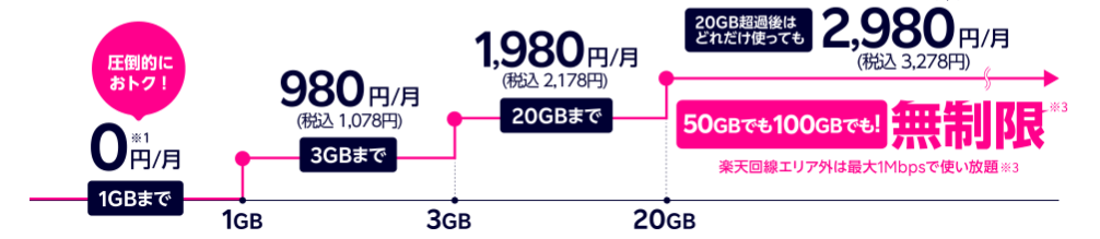 楽天モバイルはどれだけ使っても月額最大2980円!