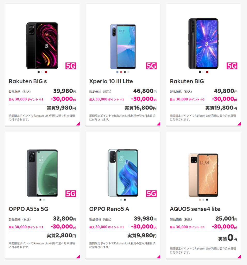 例えば『AQUOS Sense4 Lite』なら最大ポイント30000円分で本体代が実質0円!スマホ製品本体無料同然で手に入る!